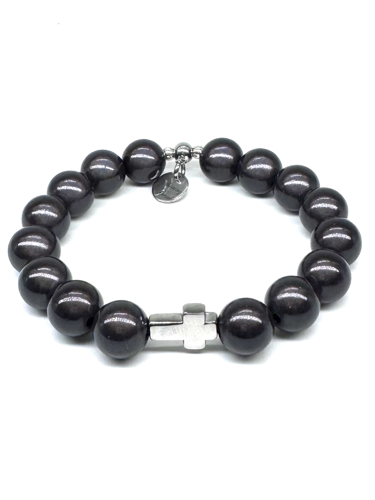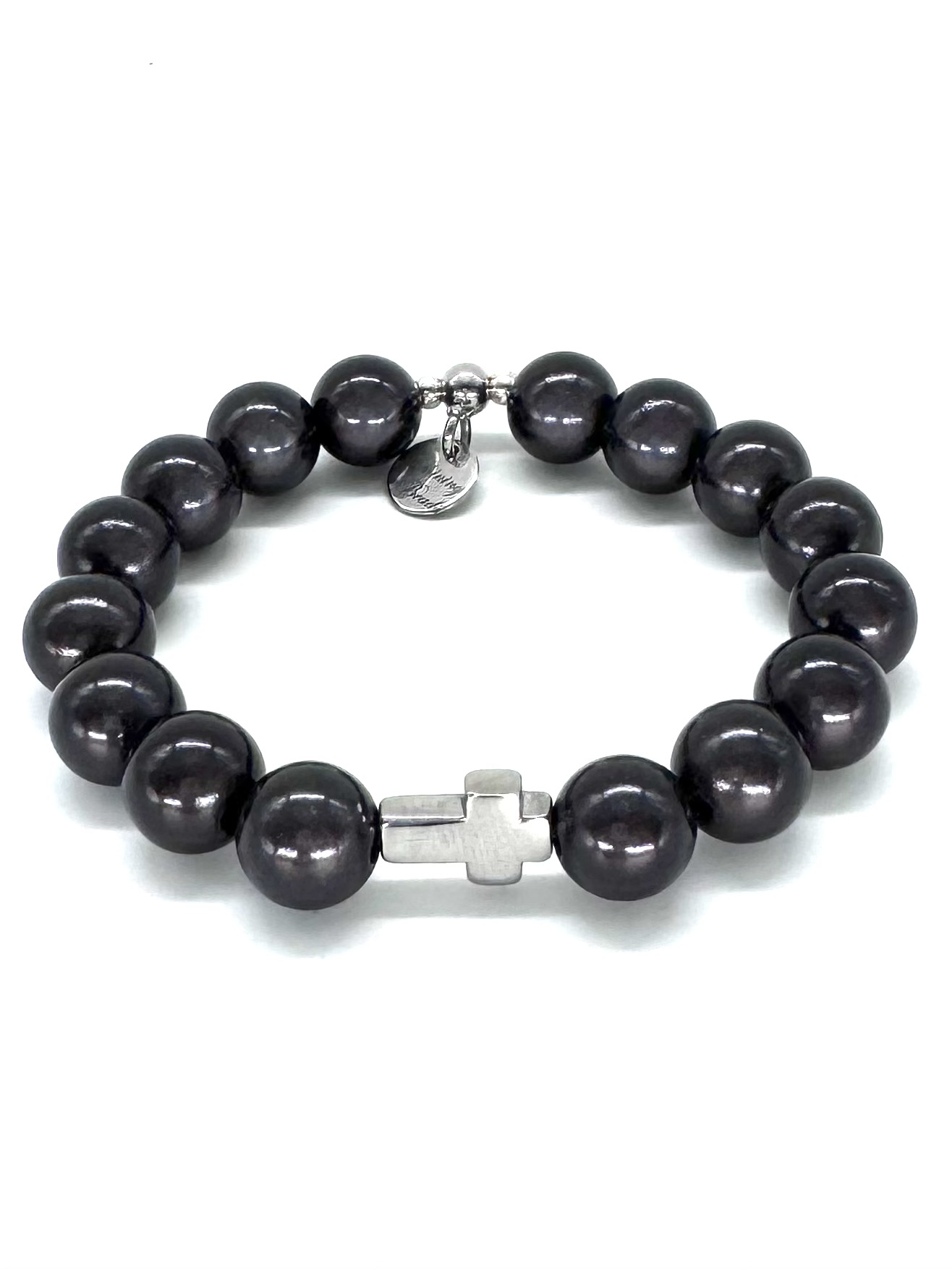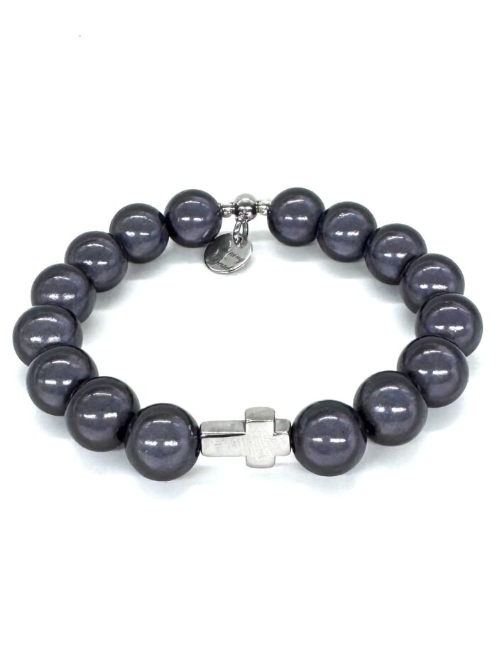Herren Armband Illumination-Pearls – Leucht-Perlen Edelstahl – Kreuz