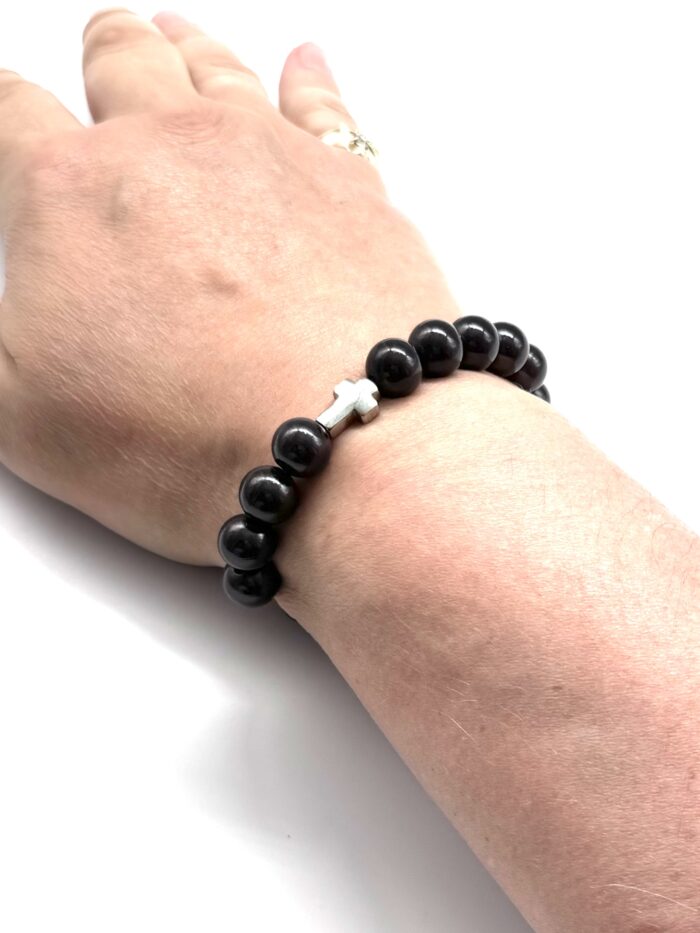 • handgefertigtes Perlenarmband in leuchtendem Design mit Kreuz in Edelstahl