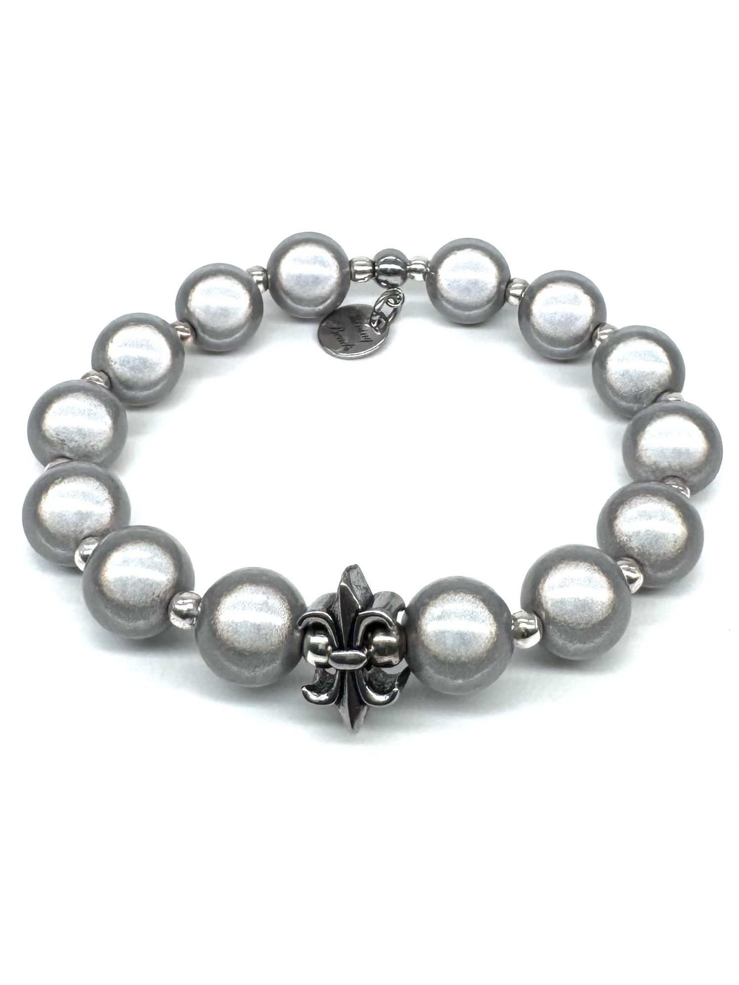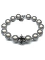 Herren Armband Illumination-Pearls – Leucht-Perlen hell-grau französische Lilie Edelstahl