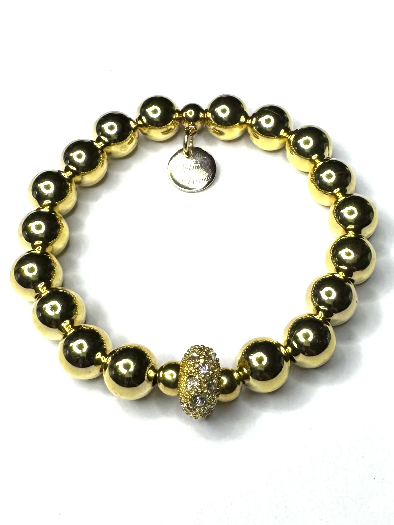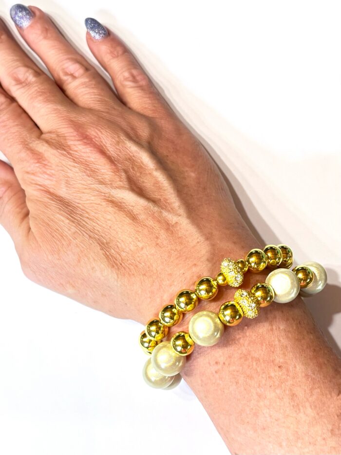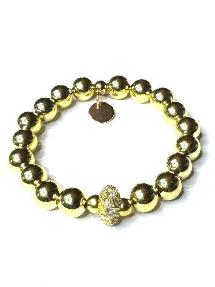 exclusives Perlen-Armband-GOLD-mit Zirkonia-Diskus-Element 10mm