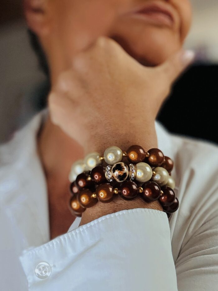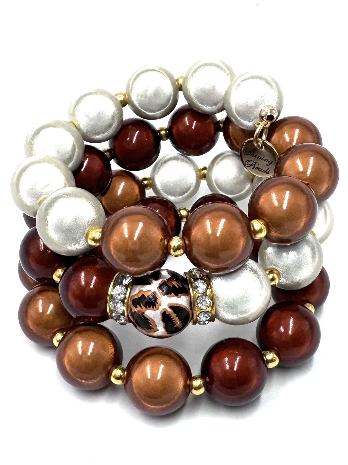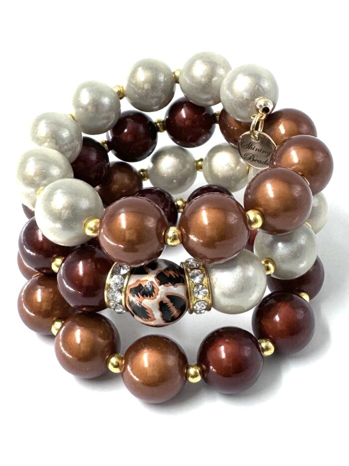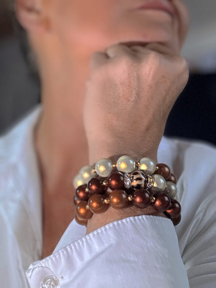Armband Illumination-Leucht-Perlen – Armreif geteilt champagner- hellcoffee- darkcoffee- Leo-Look gold 14mm
