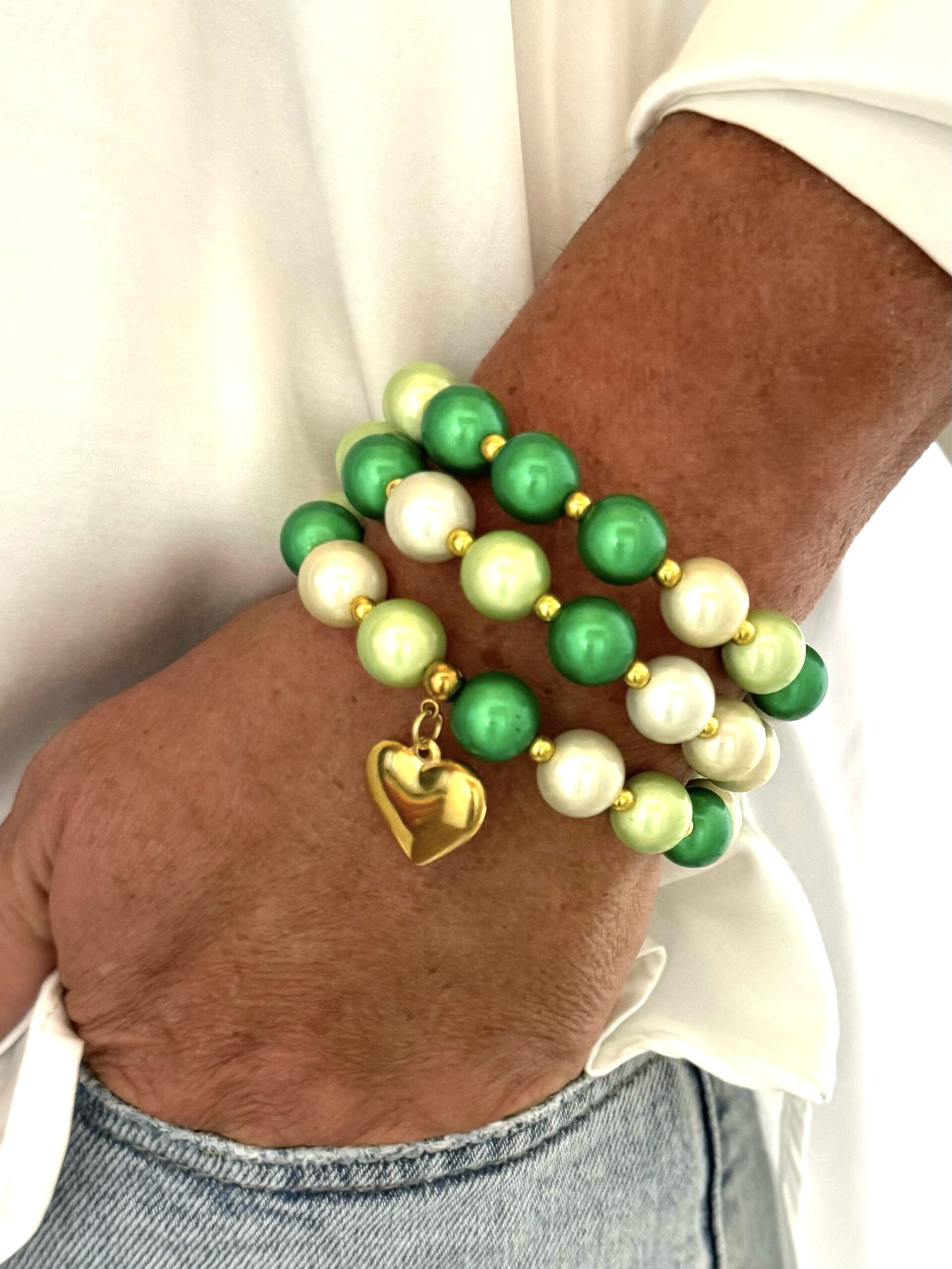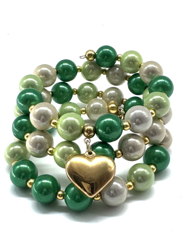 • Farbkombination: champagner – grün – limette – gold –  mit grossem Edelstahlherz- vergoldet
