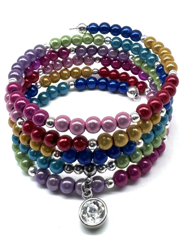 Armband Illumination-Leucht-Perlen – Armreif -Rainbow – Crystal-Charm 5-fach Wicklung 8mm