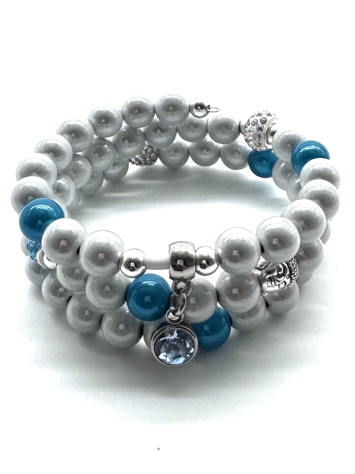 Armband Illumination-Leucht-Perlen – Armreif – weiss -türkis & Crystal Hänge-Charm-ice-blue