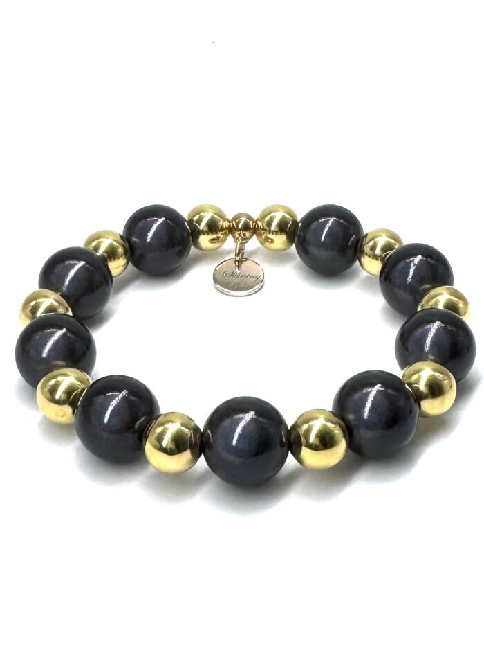Startseite Shop Damen Armbänder Armband Illumination-Leucht-Perlen -black-gold-14mm