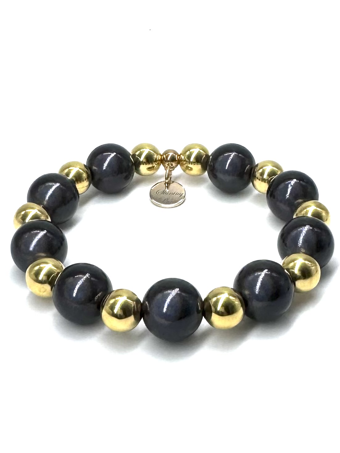 Armband Illumination-Leucht-Perlen -black-gold-14mm