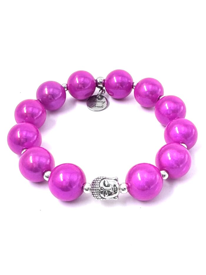 Startseite Shop Damen Armbänder Armband Illumination-Leucht-Perlen -bright-pink -Buddha-Kopf- silber 14 mm
