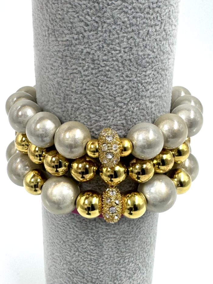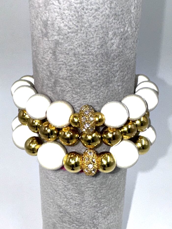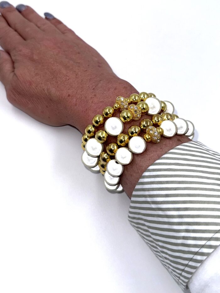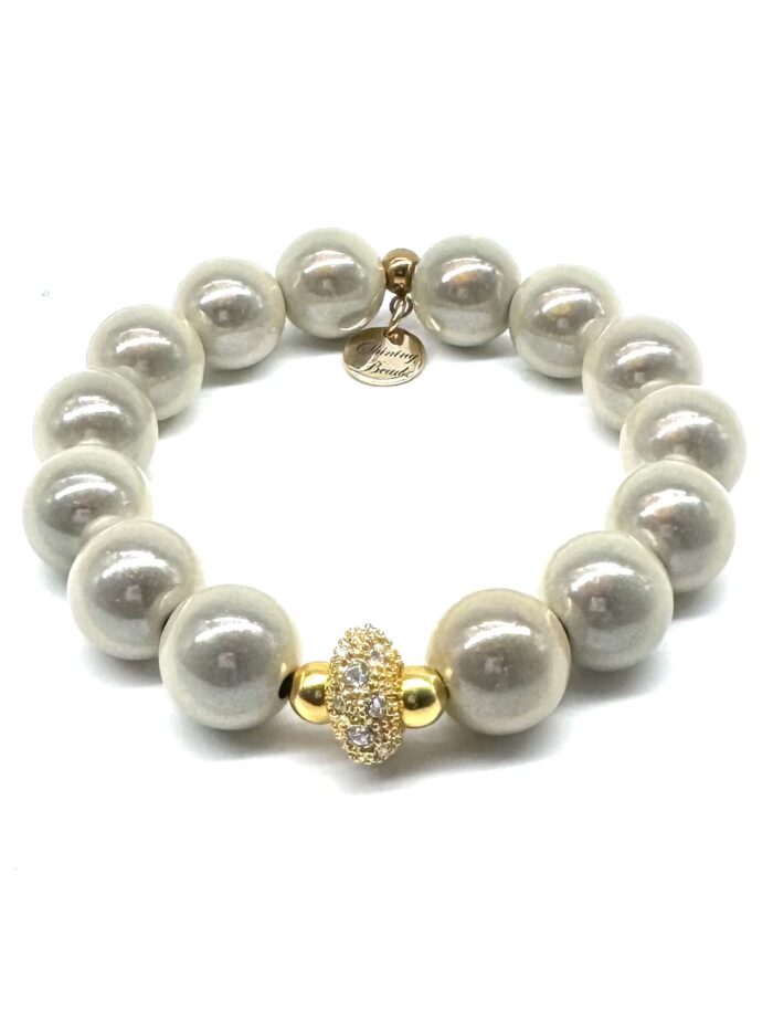 exclusives Perlen-Armband-GOLD-mit Zirkonia-Diskus-Element 10mm 24.95€ inkl. MwST.