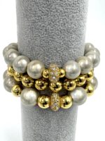 exclusives Perlen-Armband-GOLD-mit Zirkonia-Diskus-Element 10mm