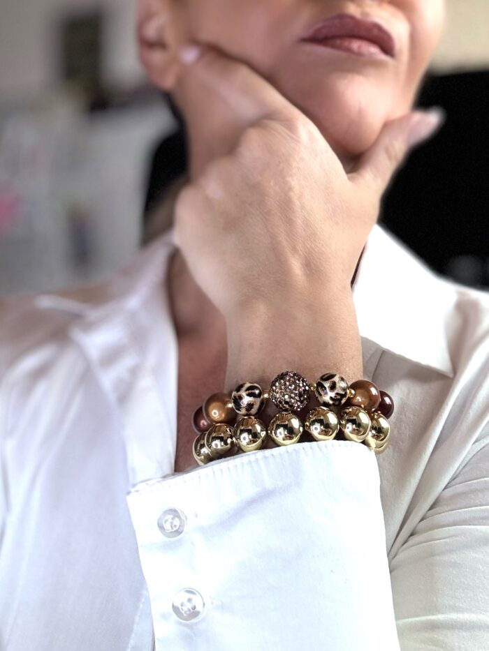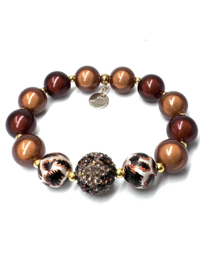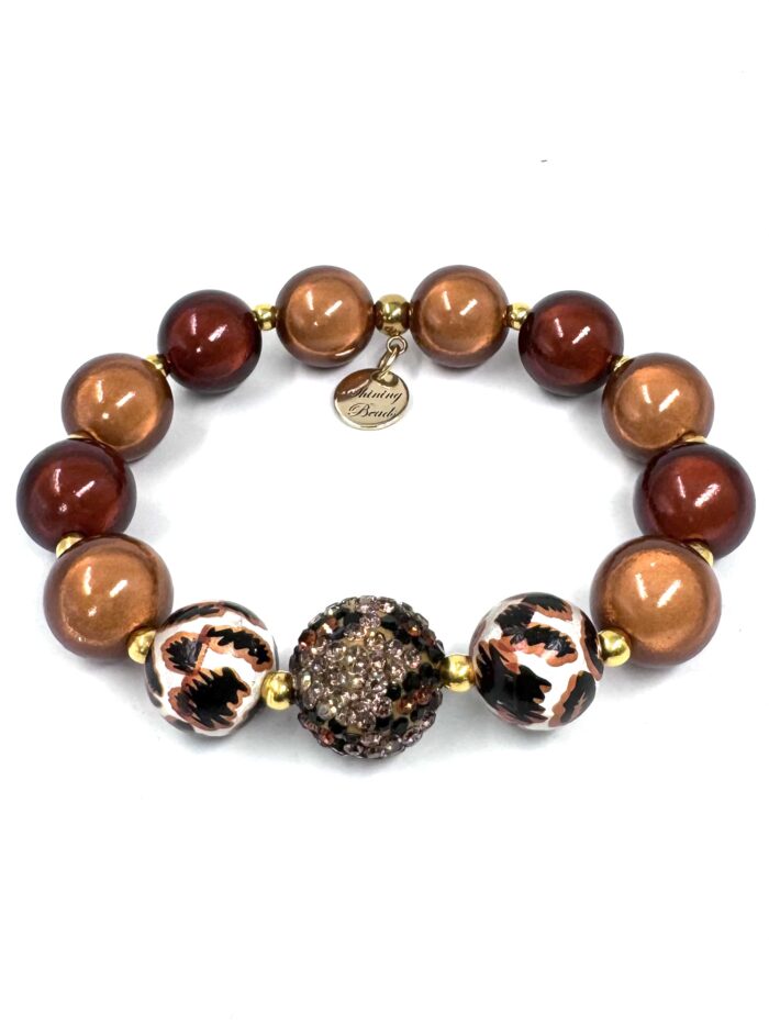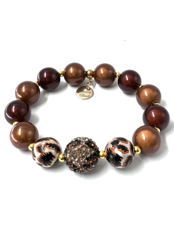 Armband Illumination-Leucht-Perlen – coffee-dream 14 mm- mit 16mm Kristall-Perle im Leo-Look – gold