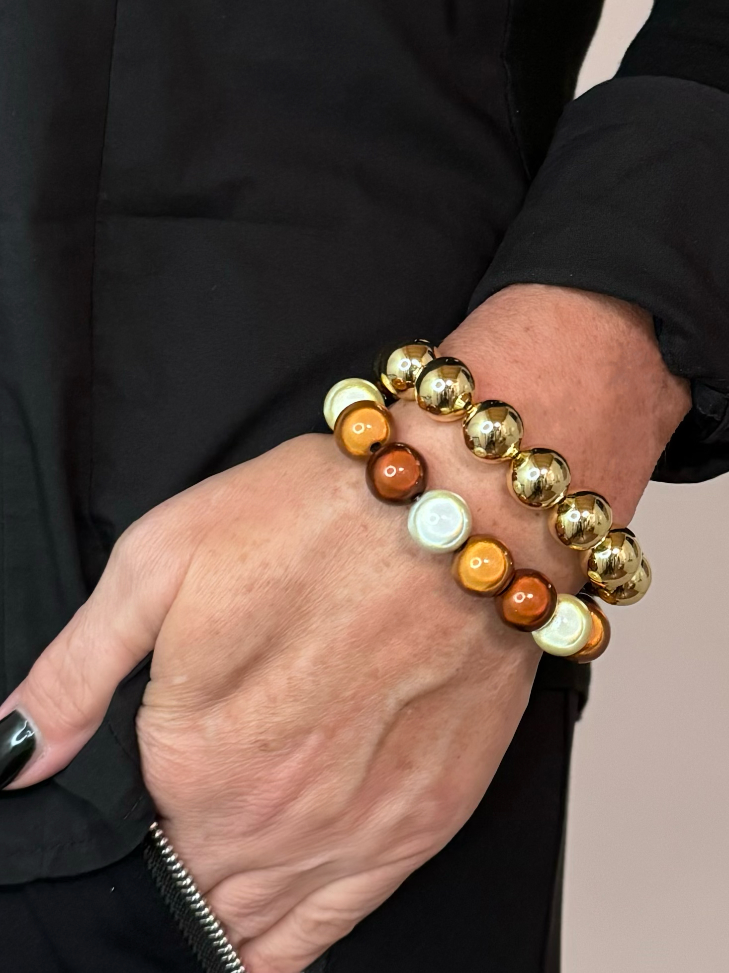 Armband Illumination-Leucht-Perlen darkcoffee- hellcoffee- champagner- gold 14 mm