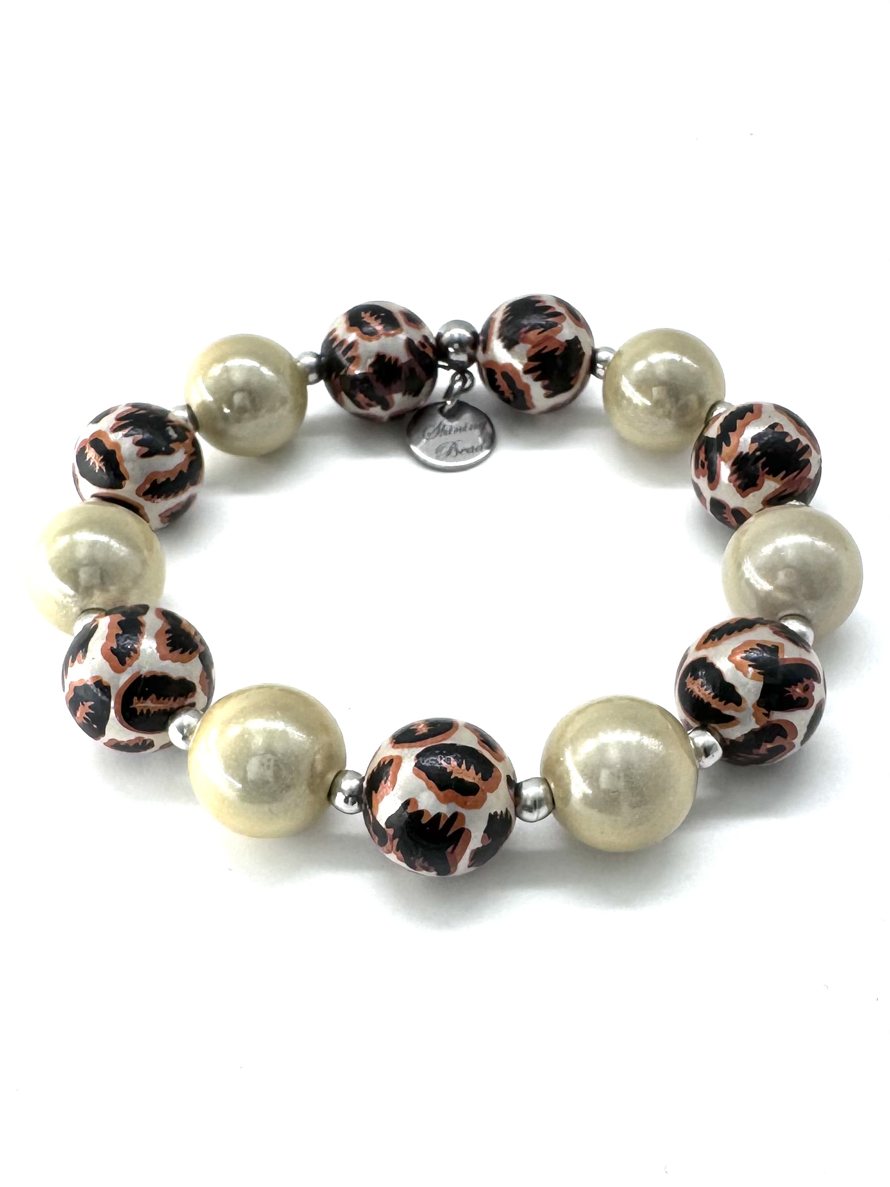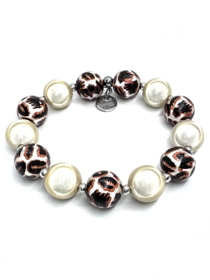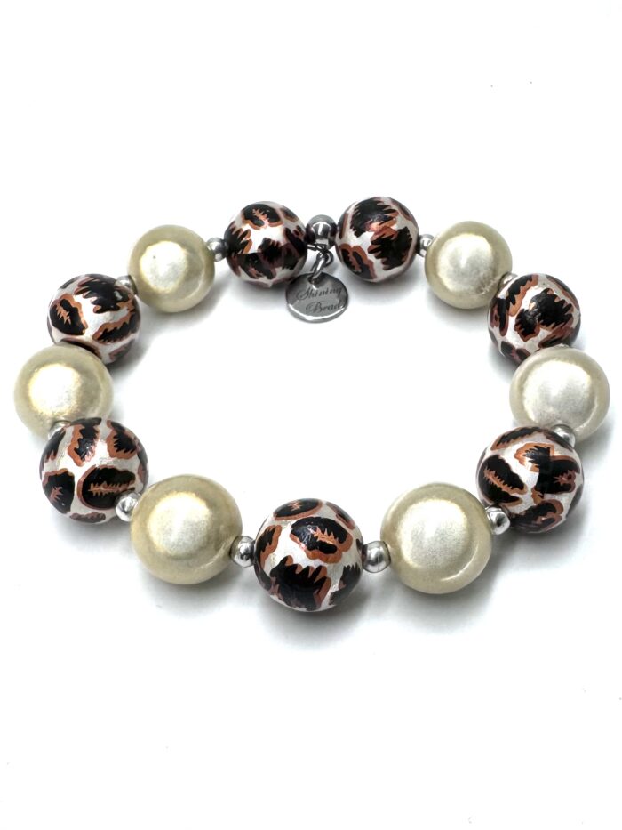 • Farbkombination: Leo-Look- Leuchtperlen – hell-champagner- mit Miniperlen und Branding in silber
