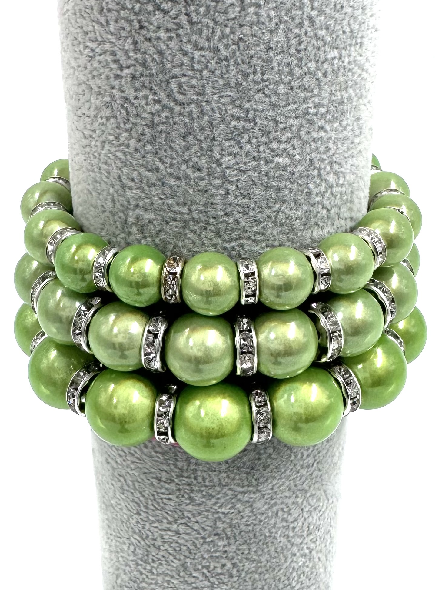 Armband Illumination-Leucht-Perlen -oliv- Vollstrass-Besatz 2 Größen