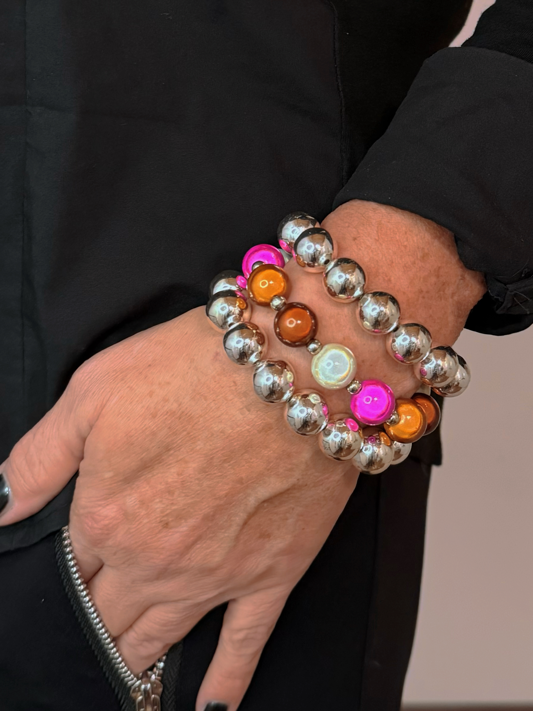 Armband Illumination-Leucht-Perlen Silberkugel geteilt orange-pink 3 Grössen