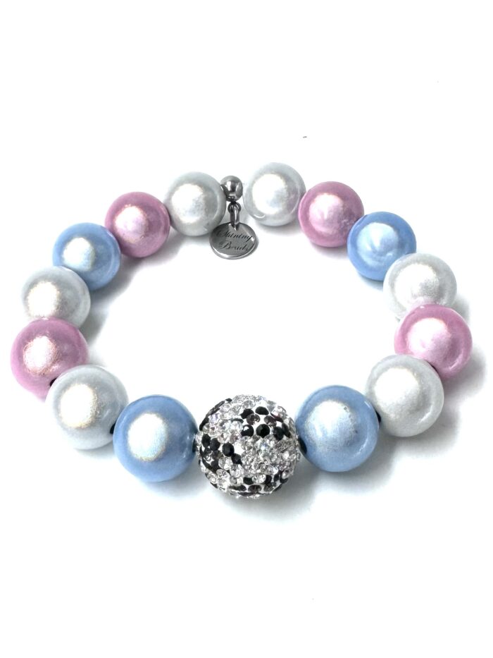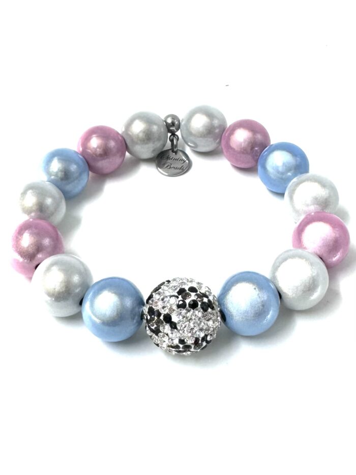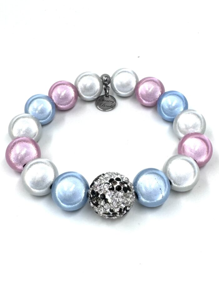 Armband Illumination-Leucht-Perlen – pastell-blue-rosè 14 mm- mit 16mm Kristall-Perle im Leo-Look