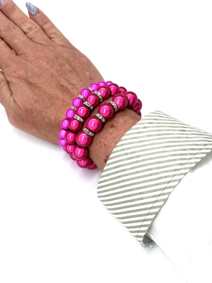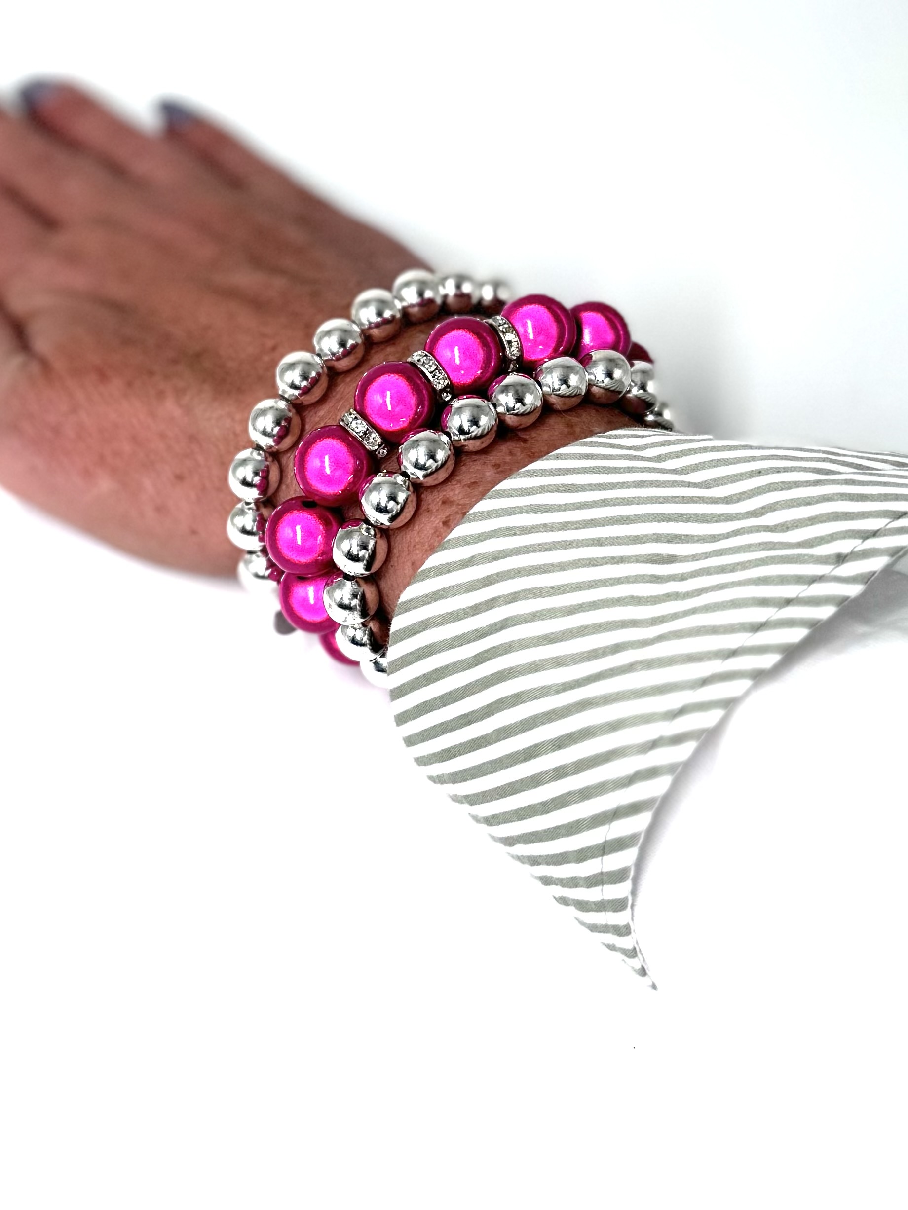 Startseite Shop Damen Armbänder Armband Illumination-Leucht-Perlen – Bright Pink – 3 Strassringe 3 Grössen