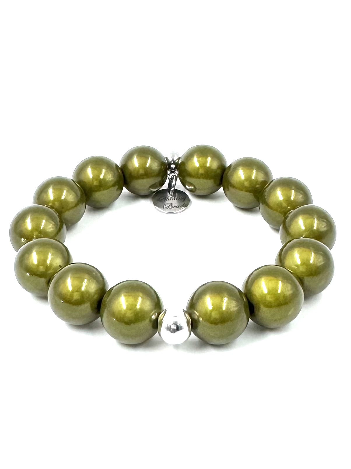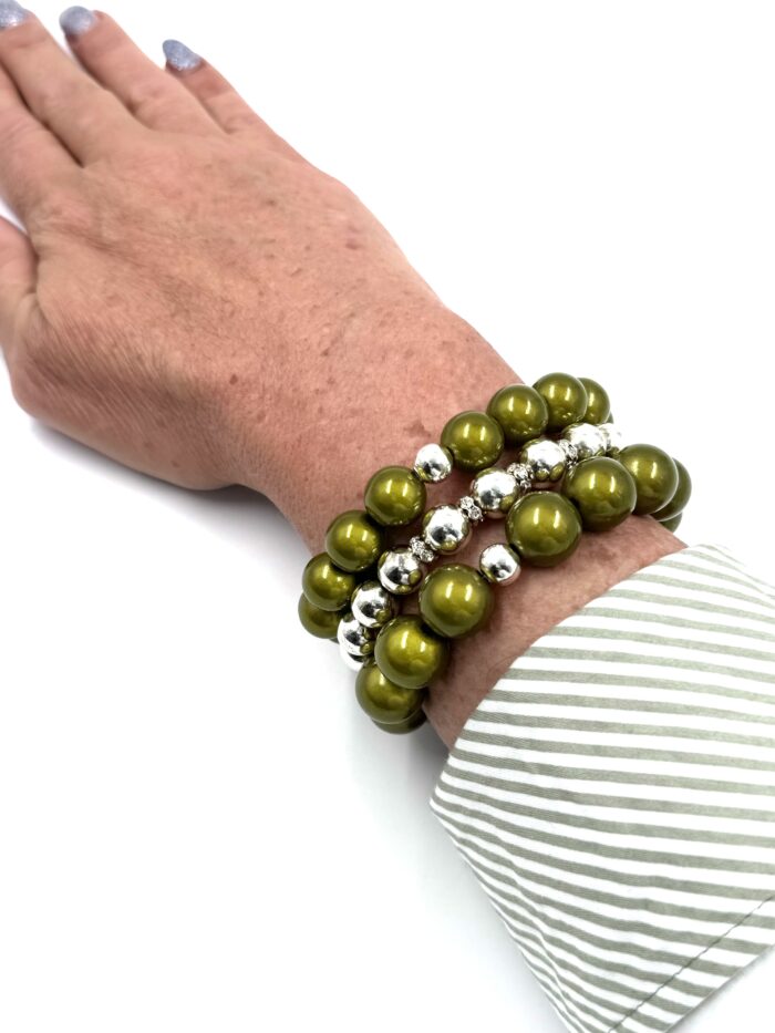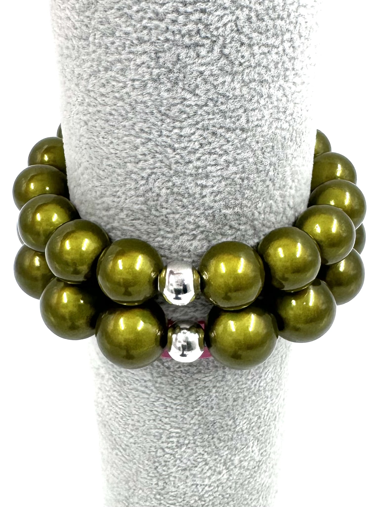 Startseite Shop Damen Armbänder Armband Illumination-Leucht-Perlen Silberkugel oliv-khaki 2 Grössen