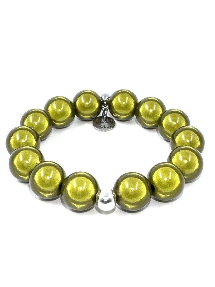 Armband Illumination-Leucht-Perlen Silberkugel oliv-khaki 2 Grössen
