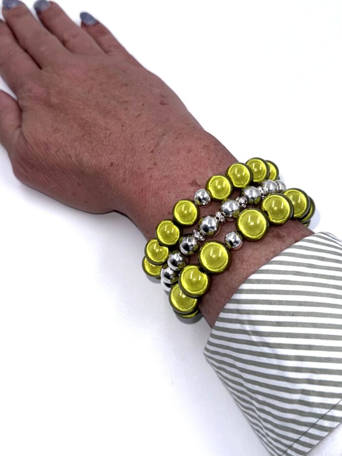 Armband Illumination-Leucht-Perlen Silberkugel limette 3 Grössen