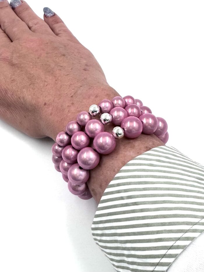 Startseite Shop Damen Armbänder Armband Illumination-Leucht-Perlen Silberkugel rosa – rosè 3 Grössen