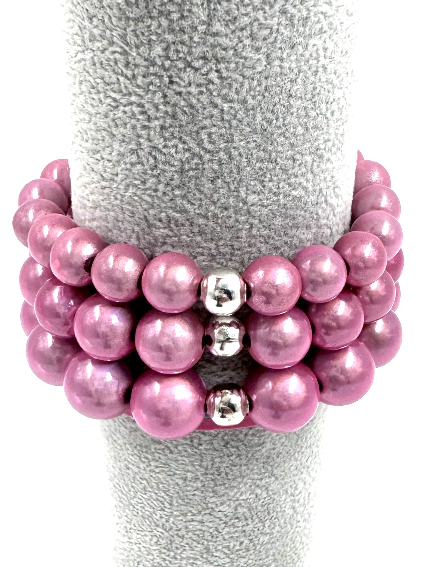 Armband Illumination-Leucht-Perlen Silberkugel rosa – rosè 3 Grössen