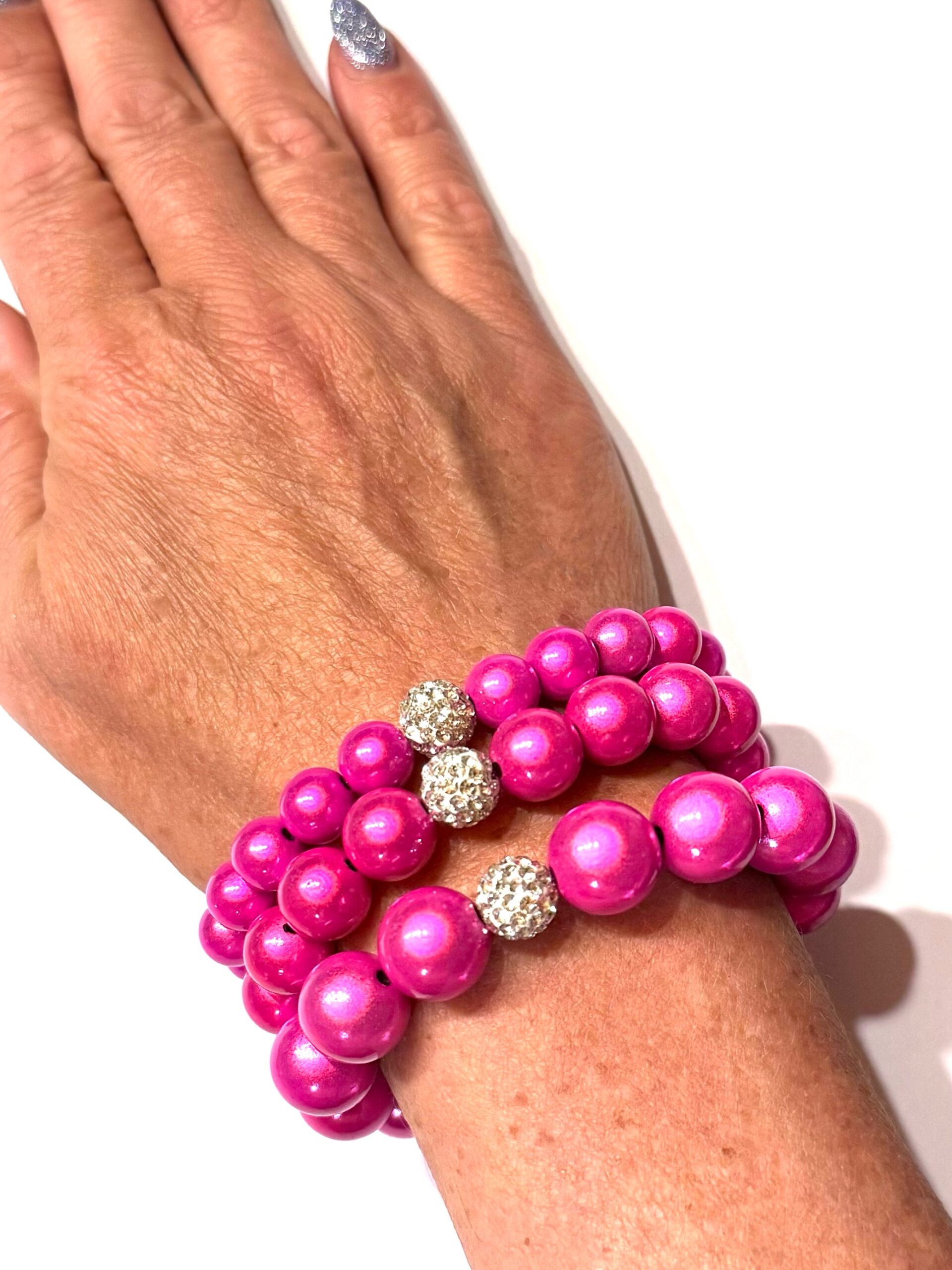 Armband Illumination-Leucht-Perlen Strasskugel pink 3 Größen