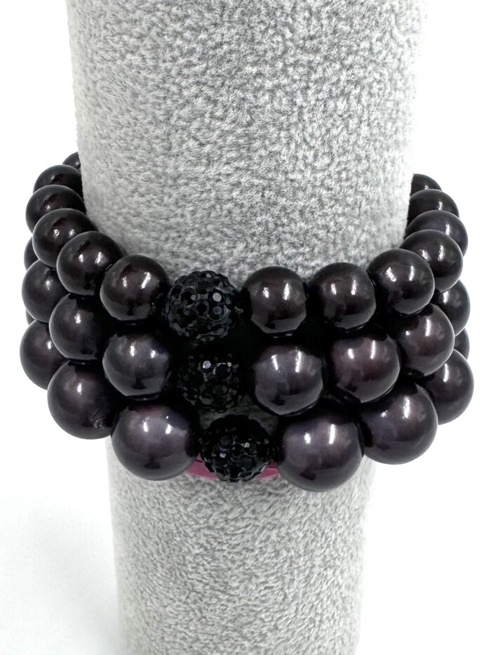Startseite Shop Damen Armbänder Armband Illumination-Leucht-Perlen Strasskugel schwarz 3 Größen