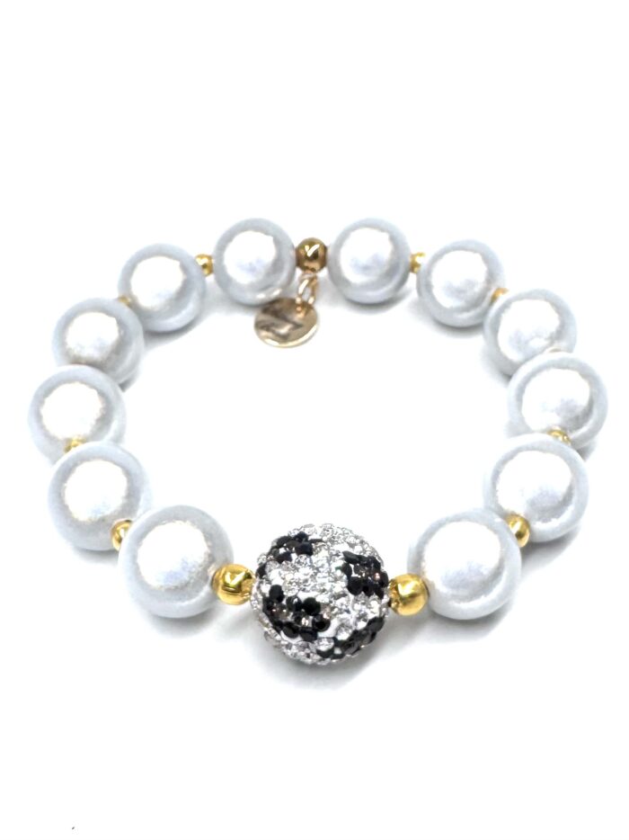Armband Illumination-Leucht-Perlen – weiss mit 16 mm Leo-Strasskugel black & white- 14mm – GOLD