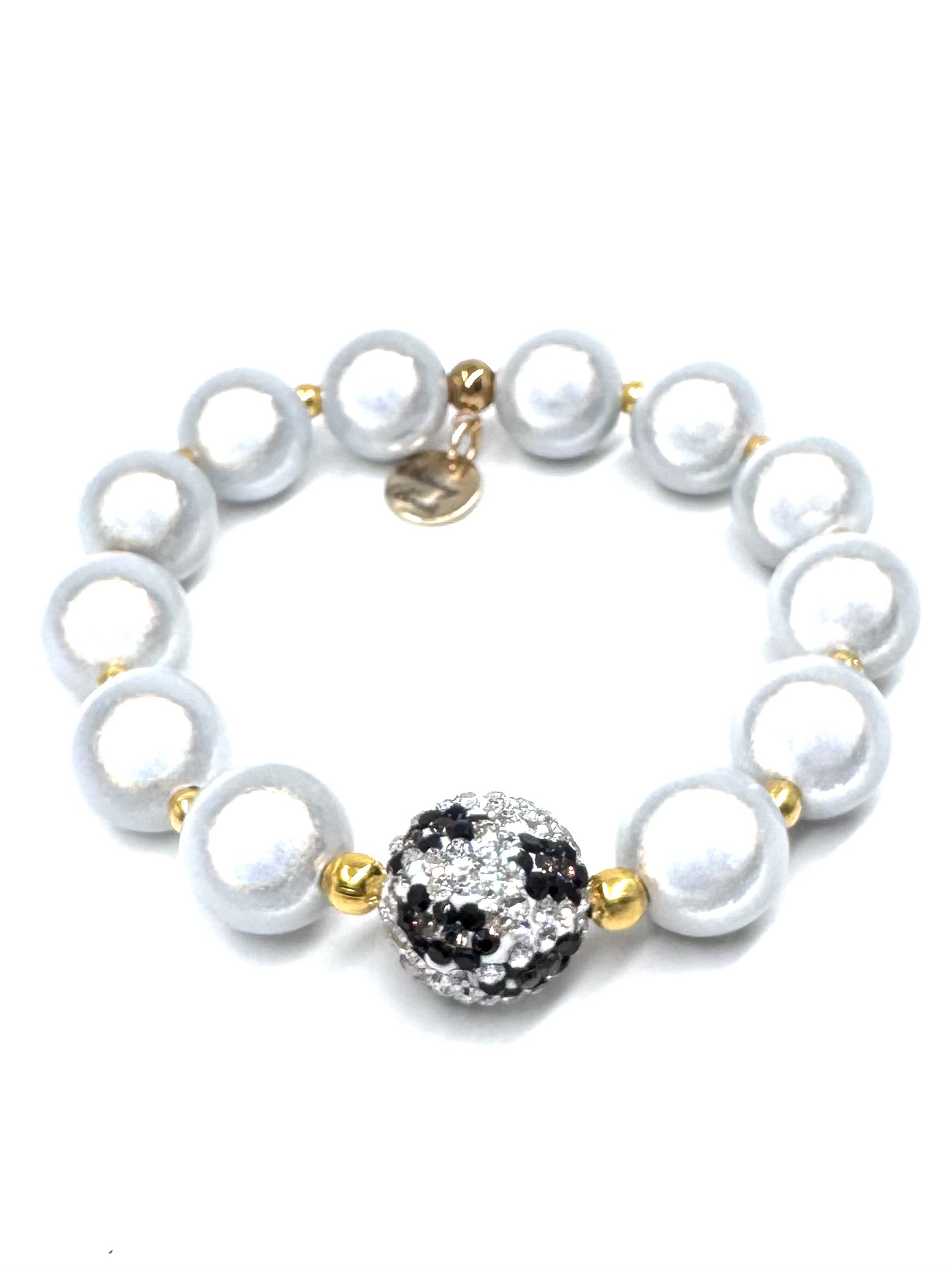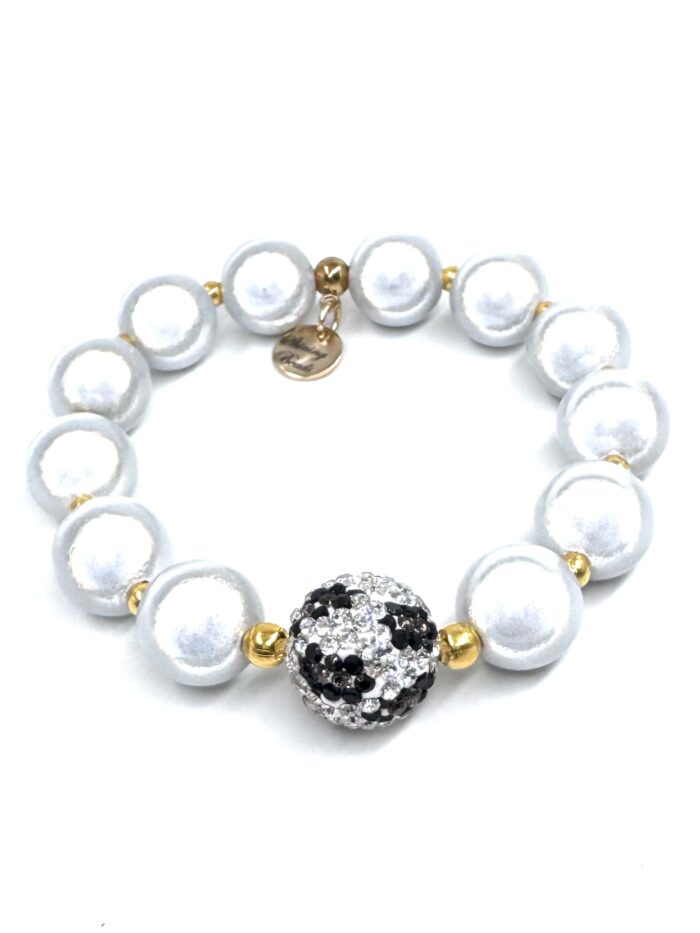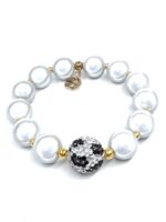 • Farbkombination: weiss – gold mit 16 mm – Leo-Perle in black&white – Strass verziert