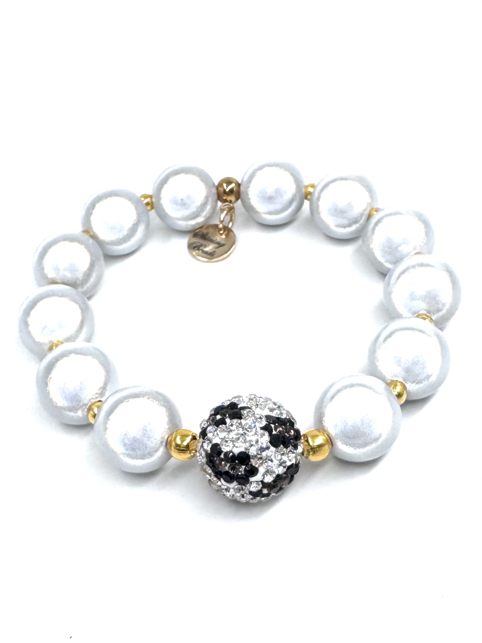 Startseite Shop Damen Armbänder Armband Illumination-Leucht-Perlen – weiss mit 16 mm Leo-Strasskugel black & white- 14mm – GOLD