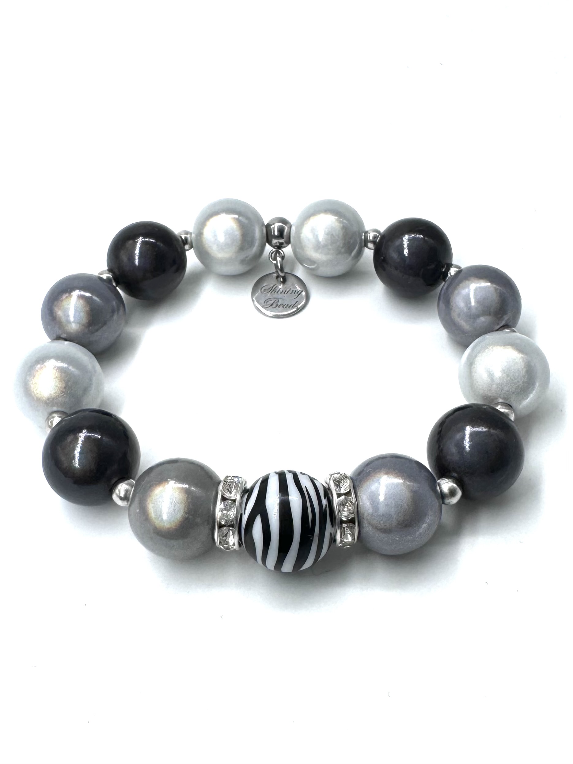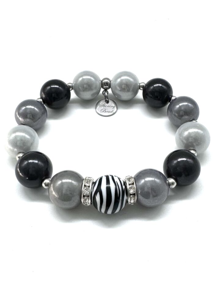 Startseite Shop Damen Armbänder Armband Illumination-Leucht-Perlen Zebra-Look – Strass black white grey 14 mm
