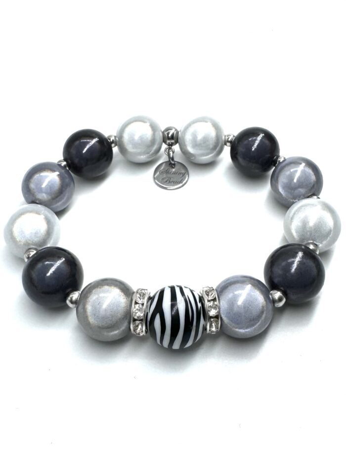 Armband Illumination-Leucht-Perlen Zebra-Look – Strass black white grey 14 mm