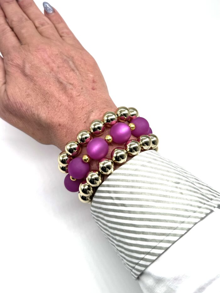 elegantes Armband Frozen- Ice Leucht-Perlen berry-beere gold