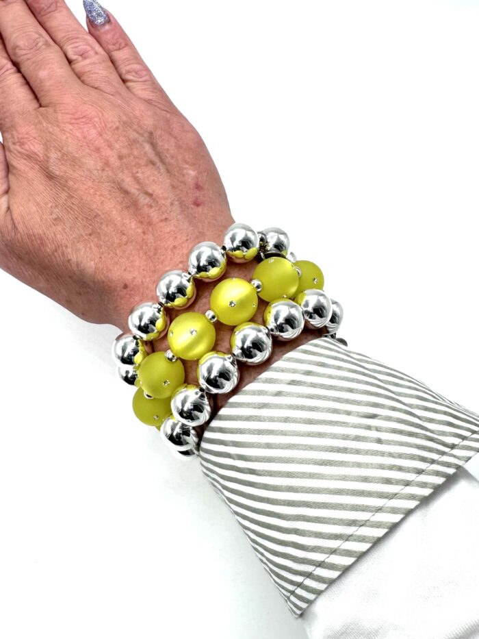 elegantes Armband Frozen-Ice Leucht-Perlen limette- silber mit Original Swarovski Crystal`s