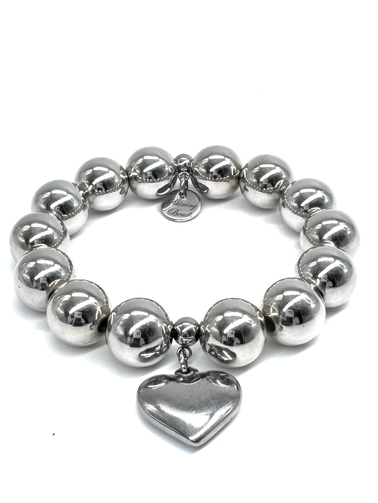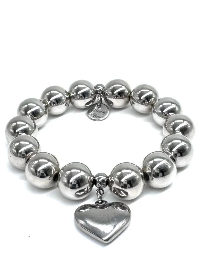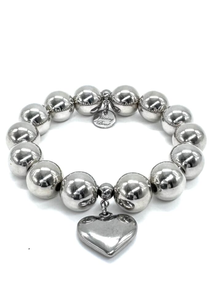Startseite Shop Damen Armbänder exclusives grosses Perlen-Armband silber Edelstahl- Herzanhänger 14mm