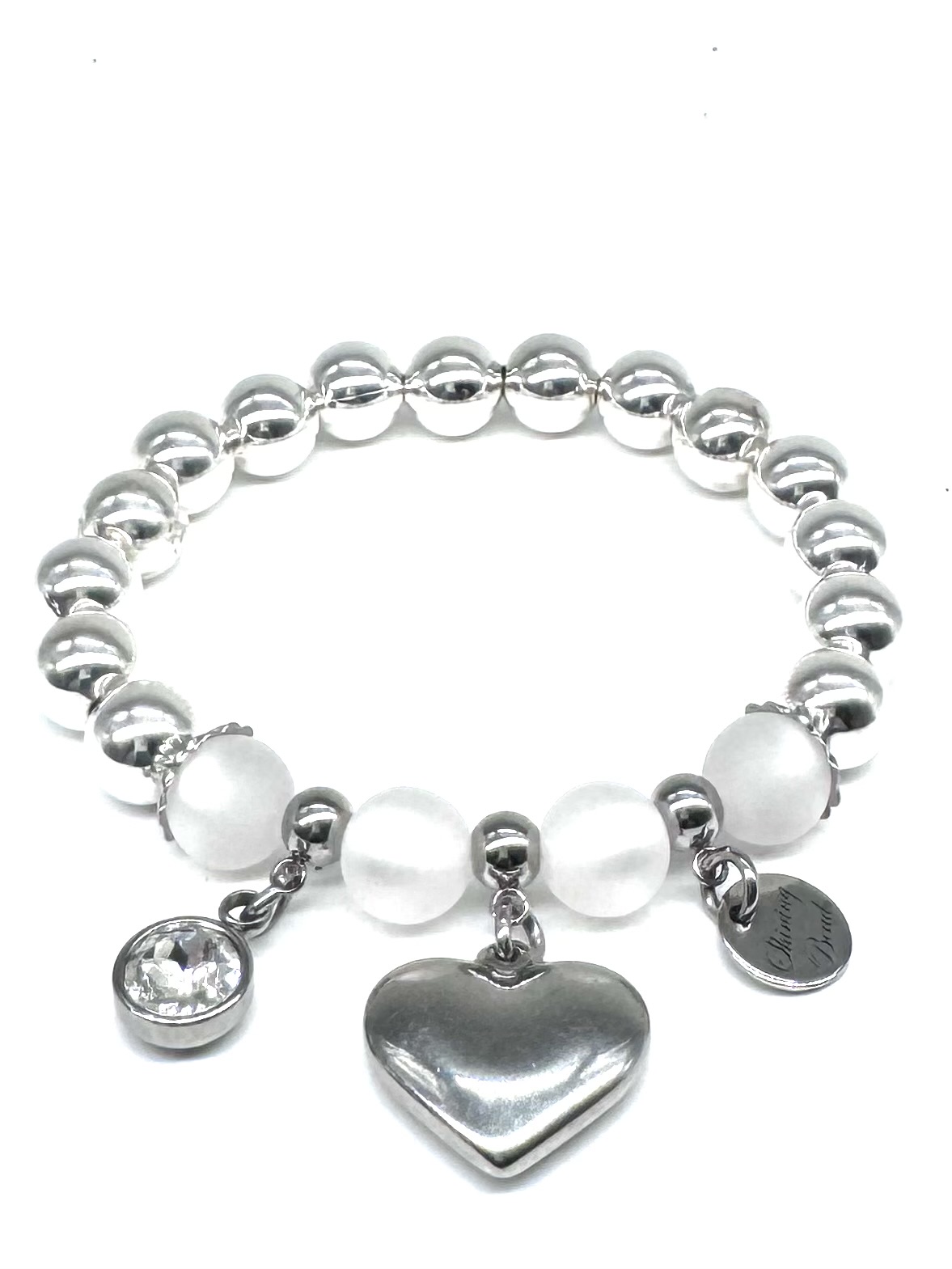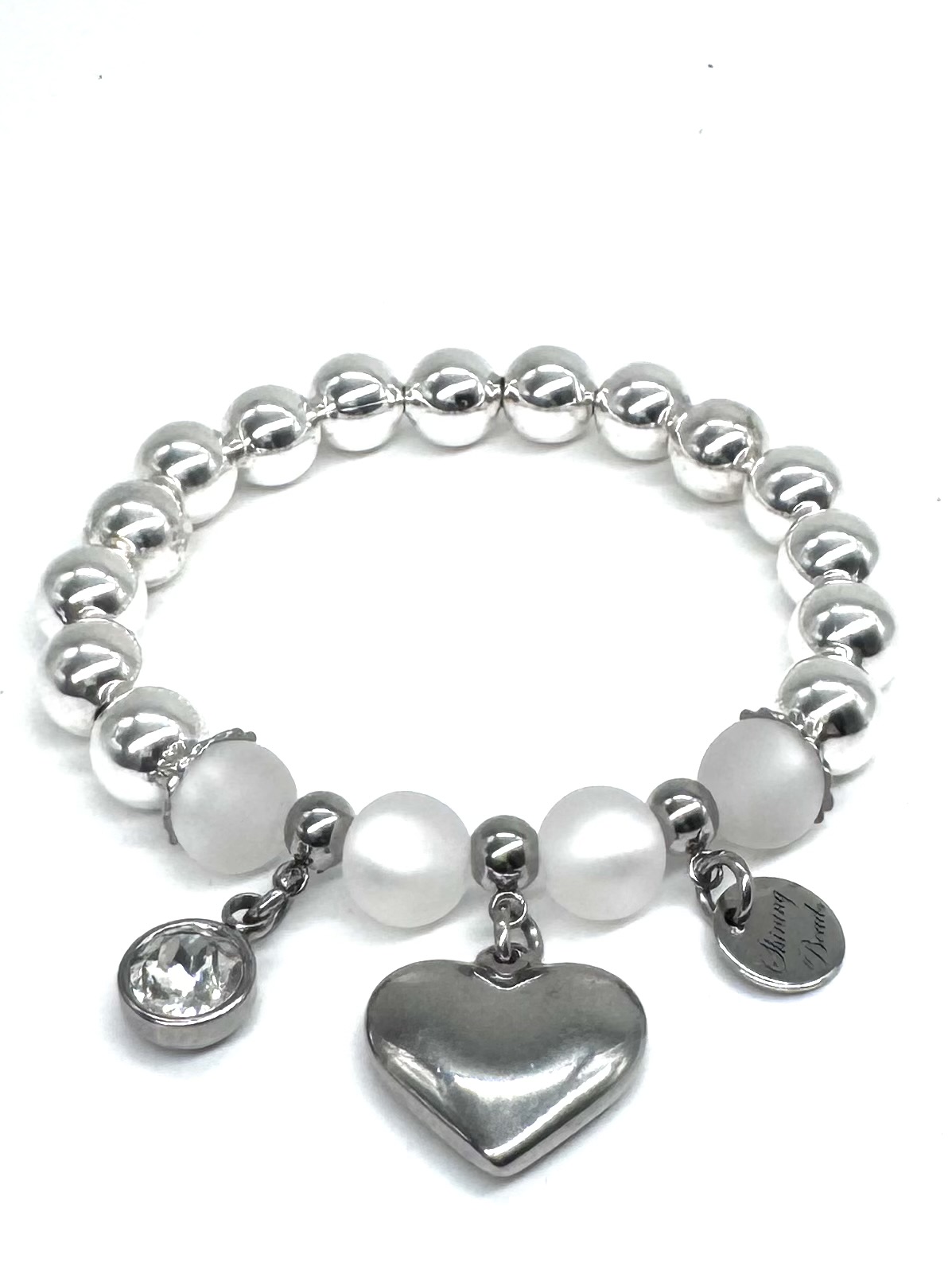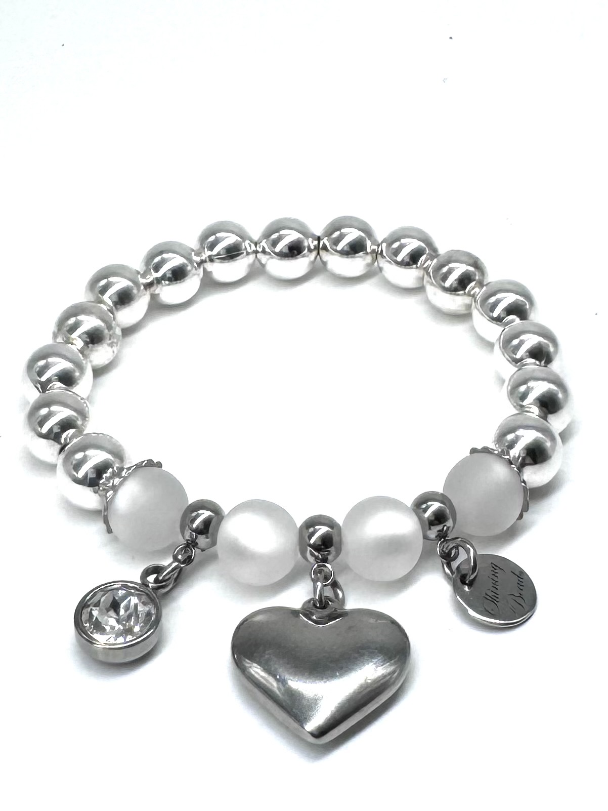 exklusives Perlen- Bettel- Armband silber & Spiegelglanz & Frozen Ice – White 10mm