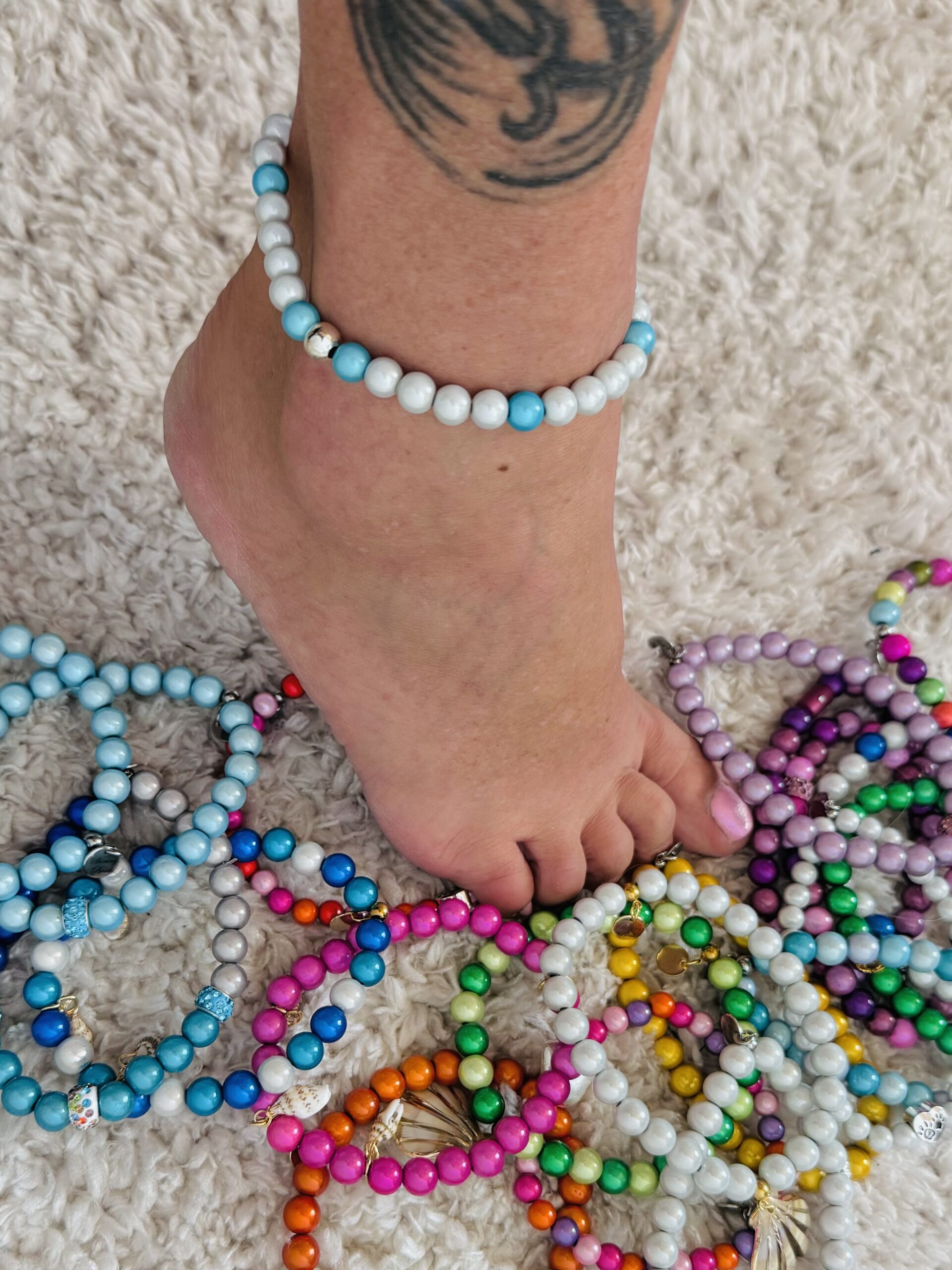 • handgefertigtes Illumination-Pearls- Leucht-Fusskettchen – Original – Shining-Beads