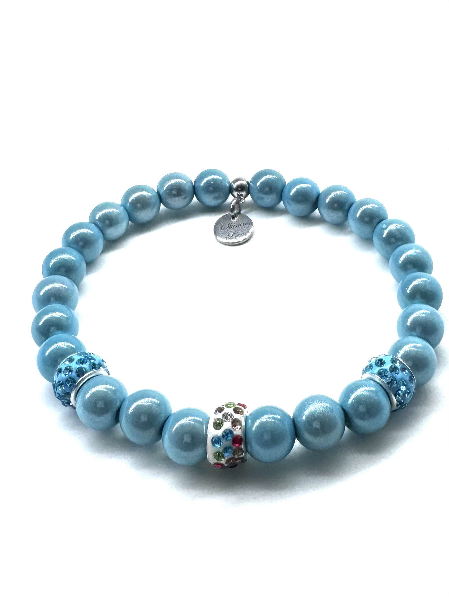Armband Illumination-Leucht-Perlen Silberkugel eisblau – hellblau