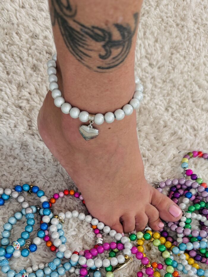 • handgefertigtes Illumination-Pearls- Leucht-Fusskettchen – Original – Shining-Beads
