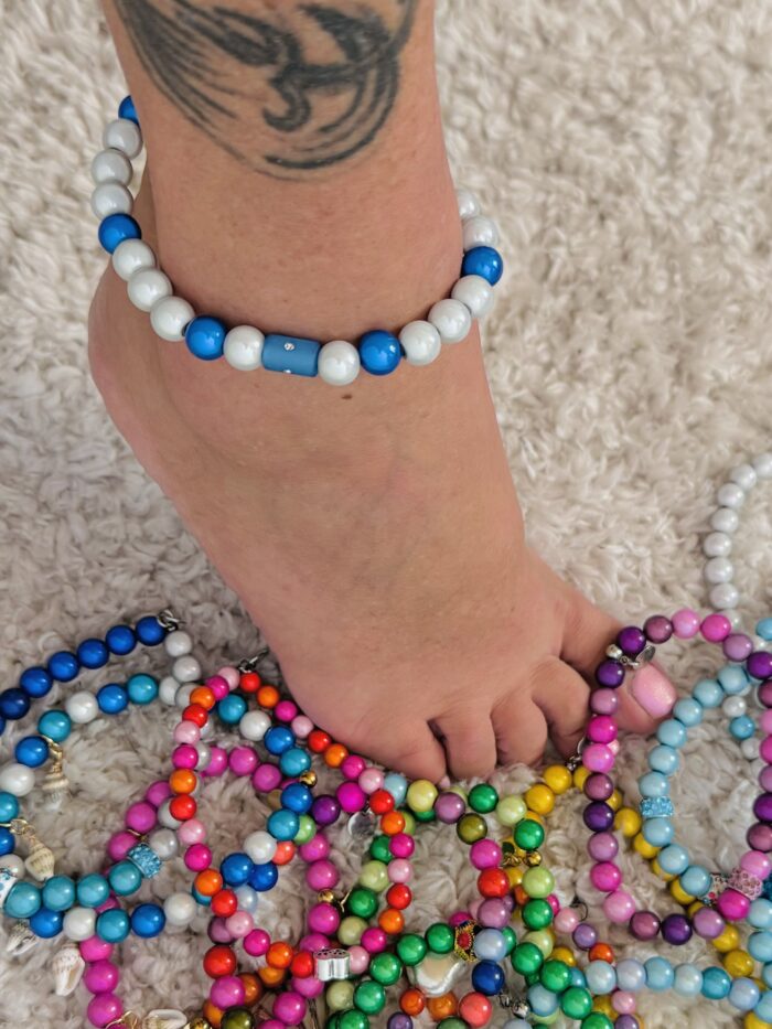• handgefertigtes Illumination-Pearls- Leucht-Fusskettchen – Original – Shining-Beads
