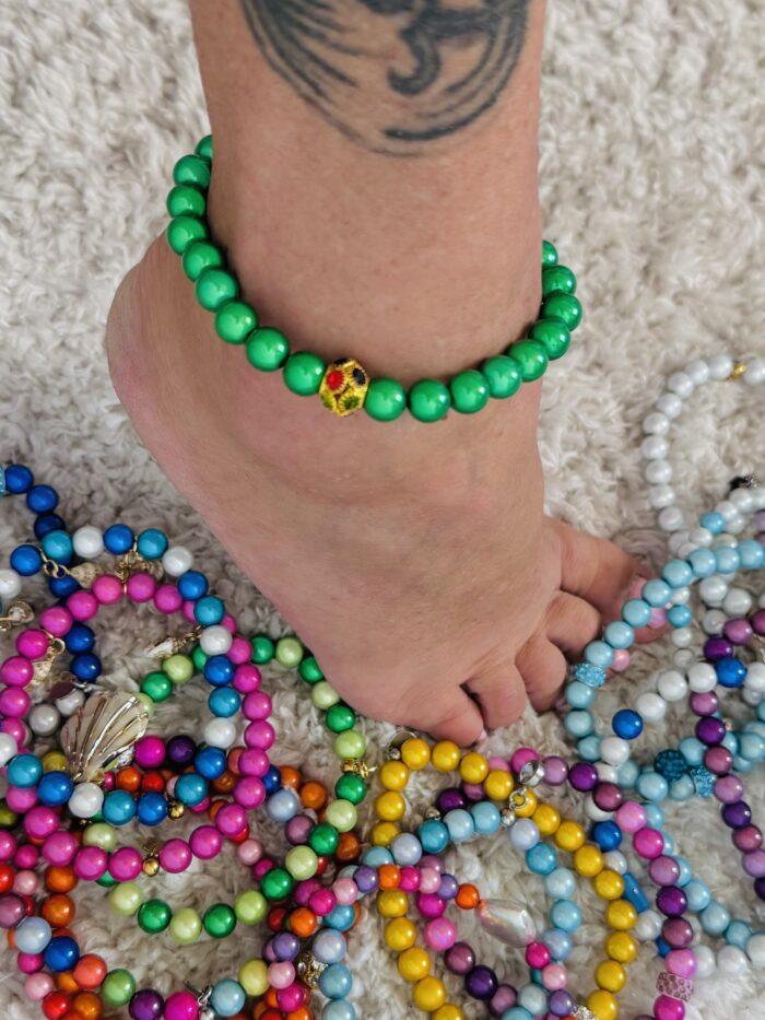 • handgefertigtes Illumination-Pearls- Leucht-Fusskettchen – Original – Shining-Beads