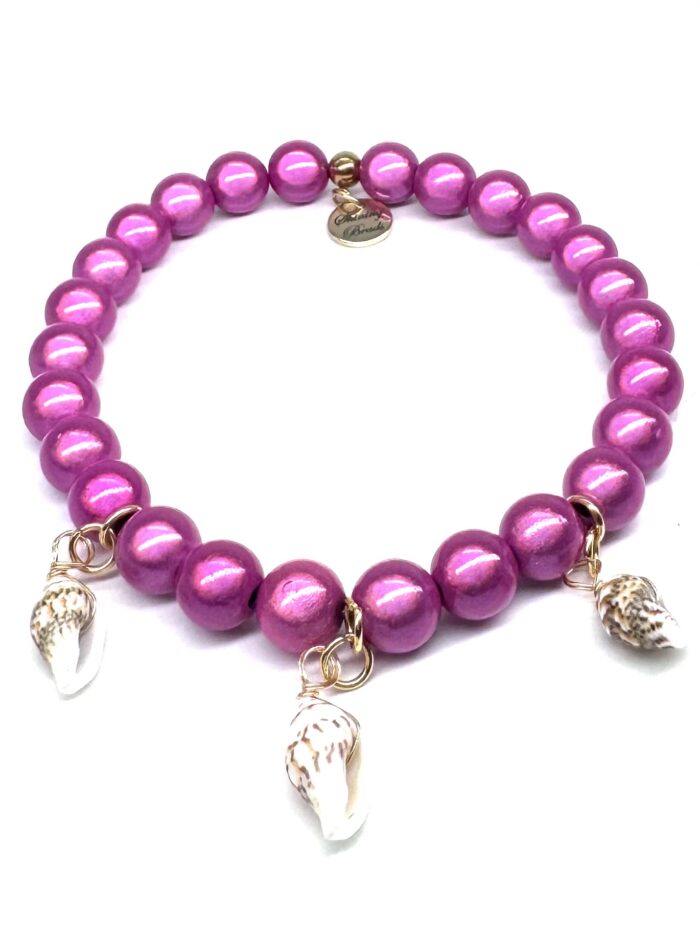 Startseite Shop Damen Fusskettchen Fusskette – Fussperlenband Illumination-Leucht-Perlen pink-gold Muscheln 10 mm