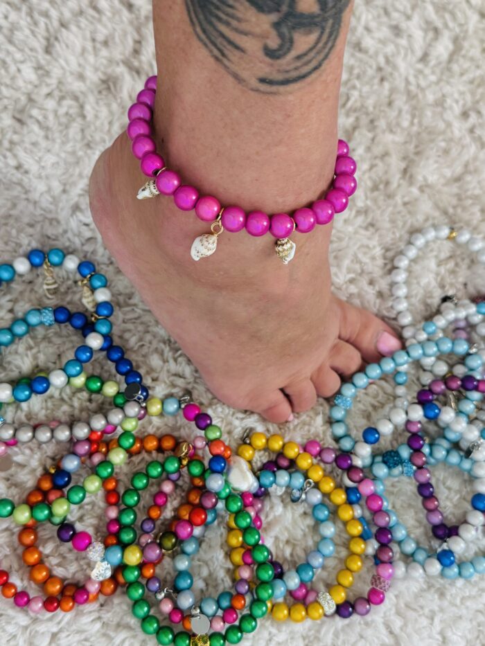 • handgefertigtes Illumination-Pearls- Leucht-Fusskettchen – Original – Shining-Beads