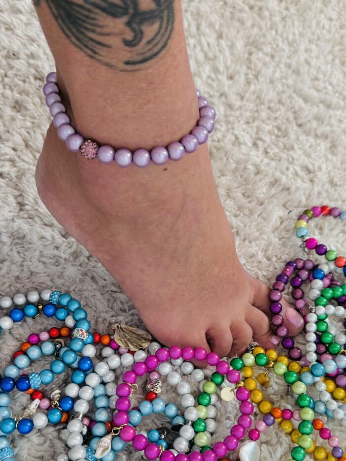 • handgefertigtes Illumination-Pearls- Leucht- Fusskettchen – Original – Shining-Beads
