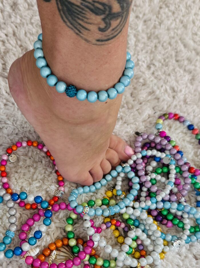 • handgefertigtes Illumination-Pearls- Leucht-Fusskettchen – Original – Shining-Beads