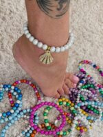 Startseite Shop Damen Fusskettchen Fusskette – Fussperlenband Illumination-Leucht-Perlen -white- Muschel 10mm