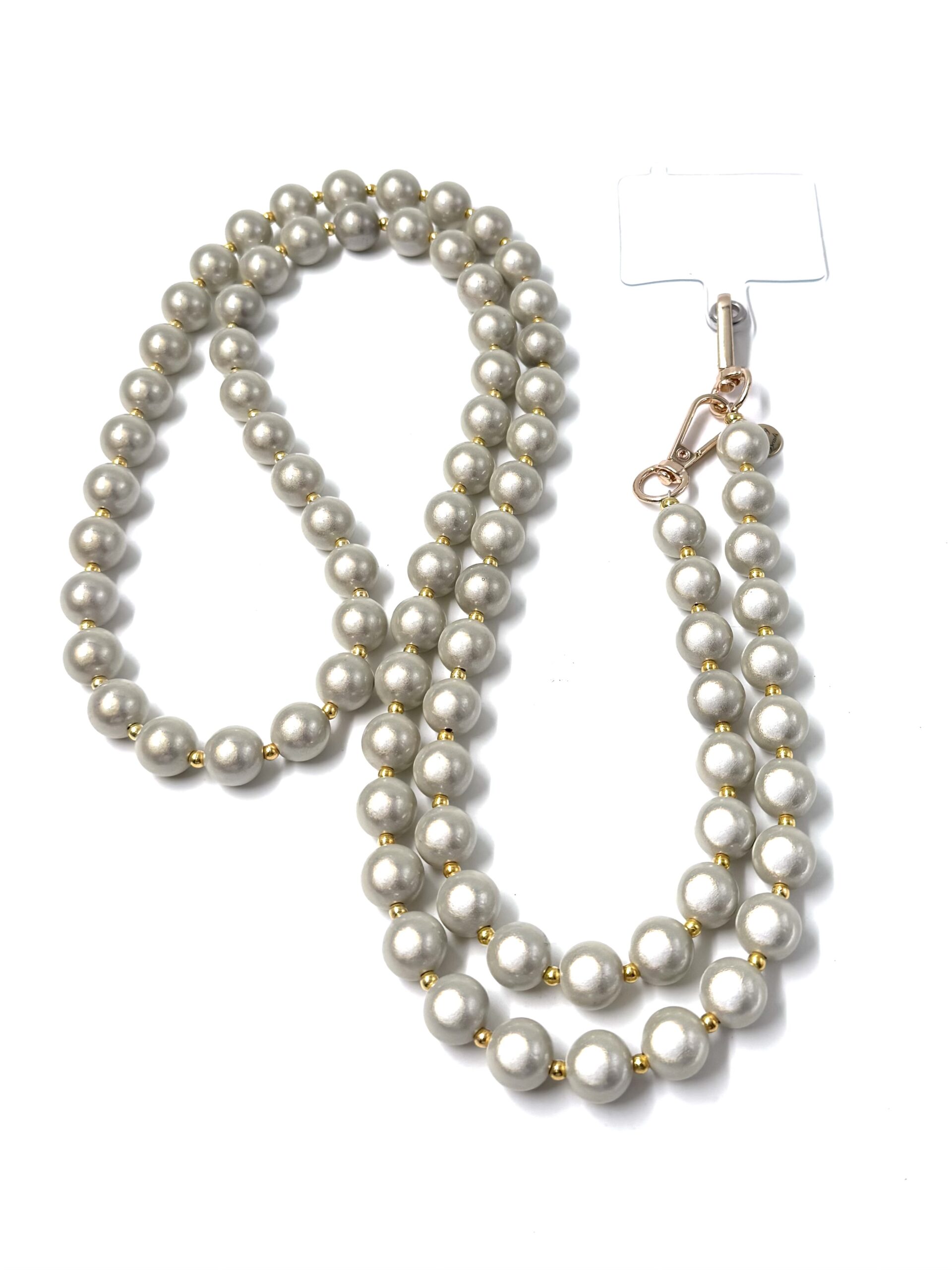 elegante Illumination Handykette 135 cm- Perlenkette champagner – GOLD 14 mm