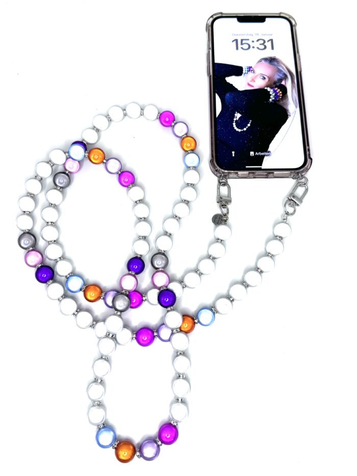 elegante Illumination Handykette – Perlenkette – elgance white-candy