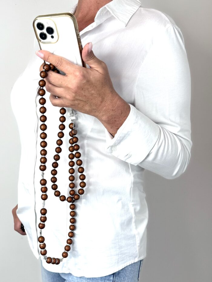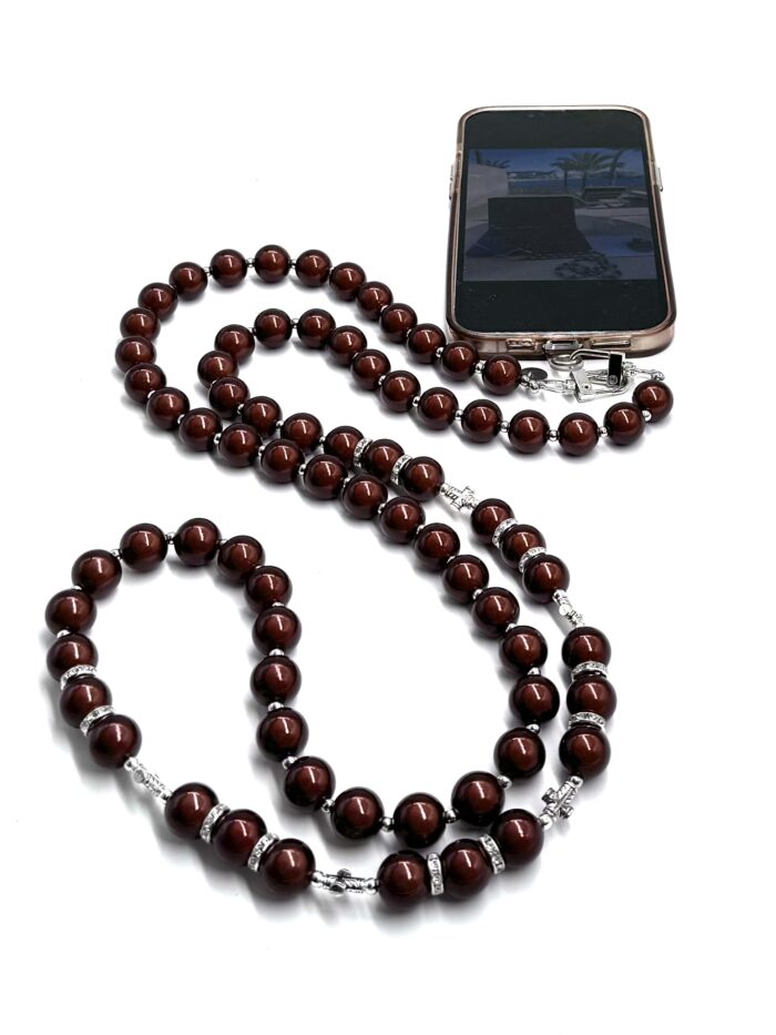 elegante Illumination Handykette – Perlenkette – UNIKAT- Kreuze – STRASS- dark-coffee