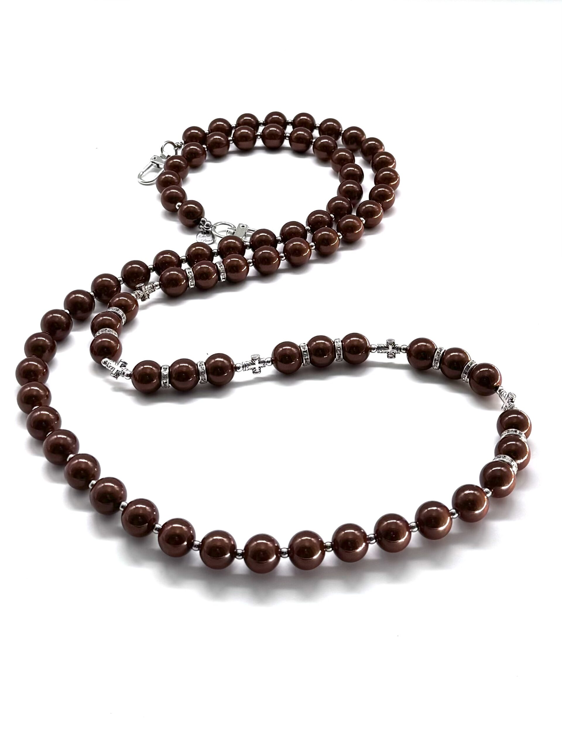 Startseite Shop Damen Handy Ketten elegante Illumination Handykette – Perlenkette – UNIKAT- Kreuze – STRASS- dark-coffee